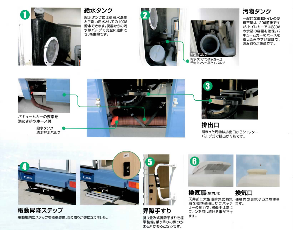 トイレカーは小便器を設置することで、使用回転率を向上させることに成功しました。小便器上には、鞄を置ける柵があります。